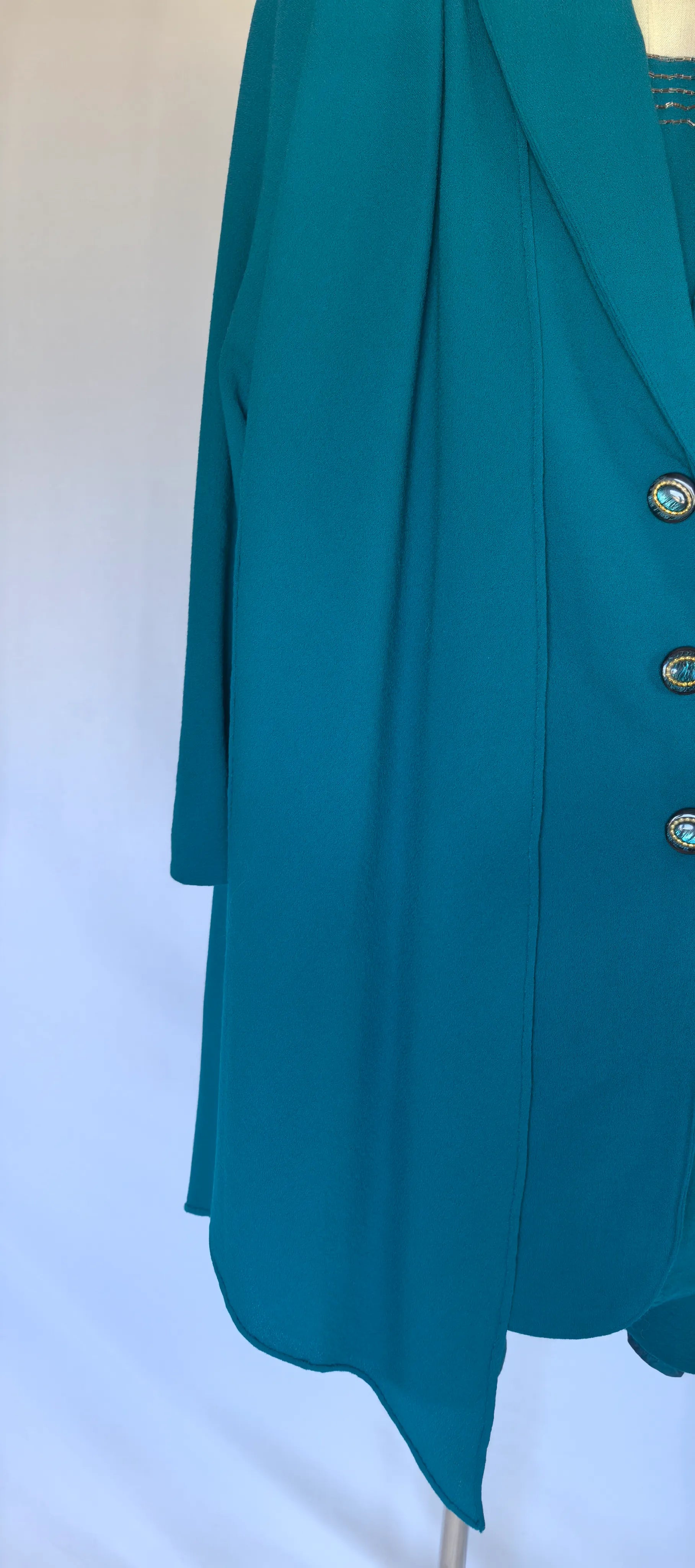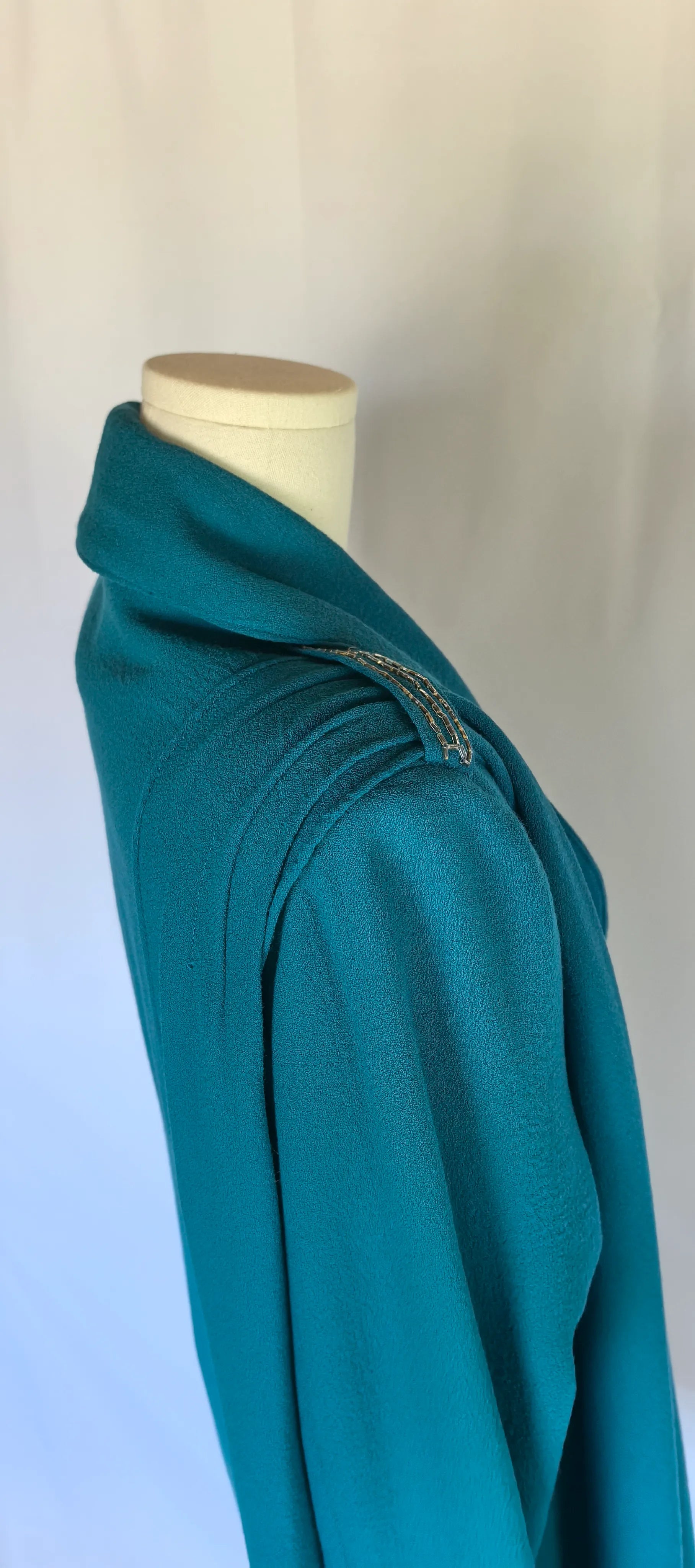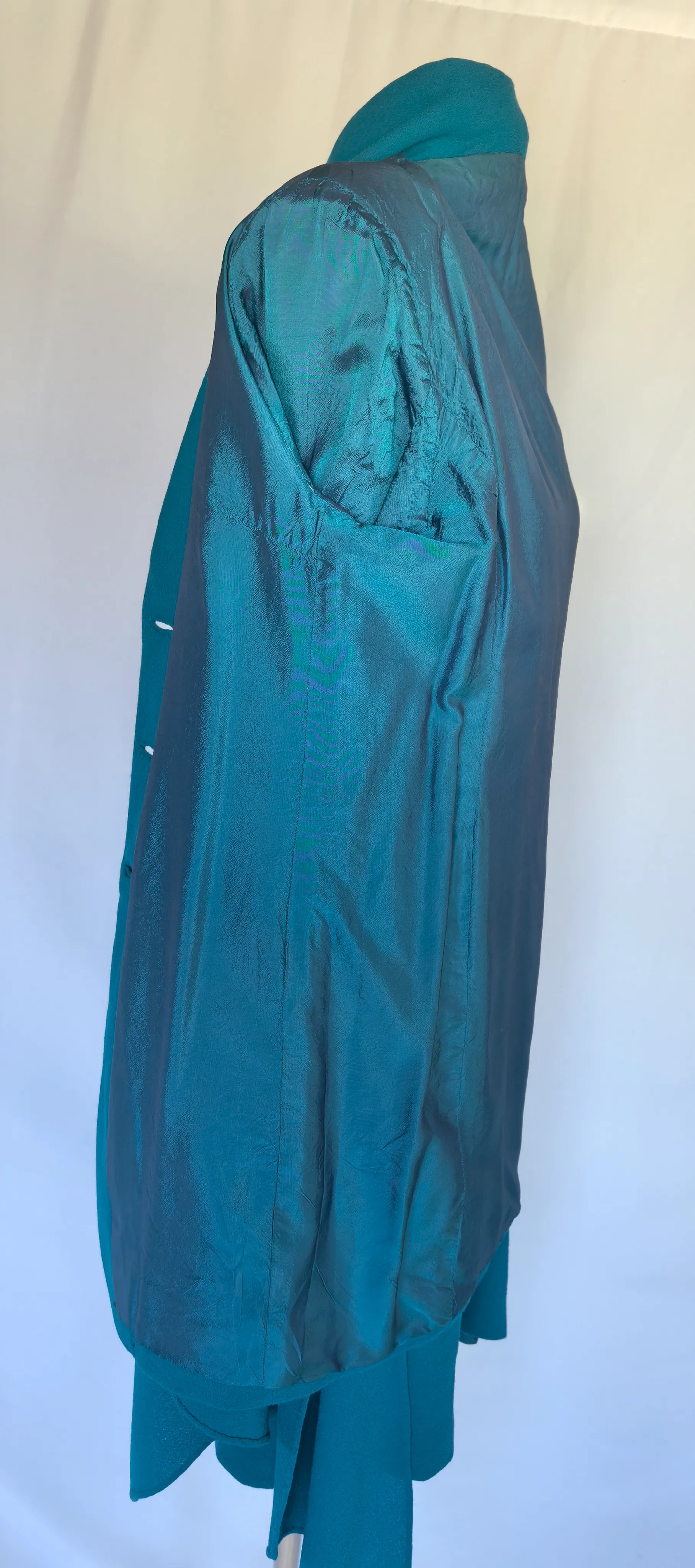 Mantou: bust 49 cm, talie 45 cm, umeri 41 cm, maneca exterioar 60 cm, lungime totala 91 cm