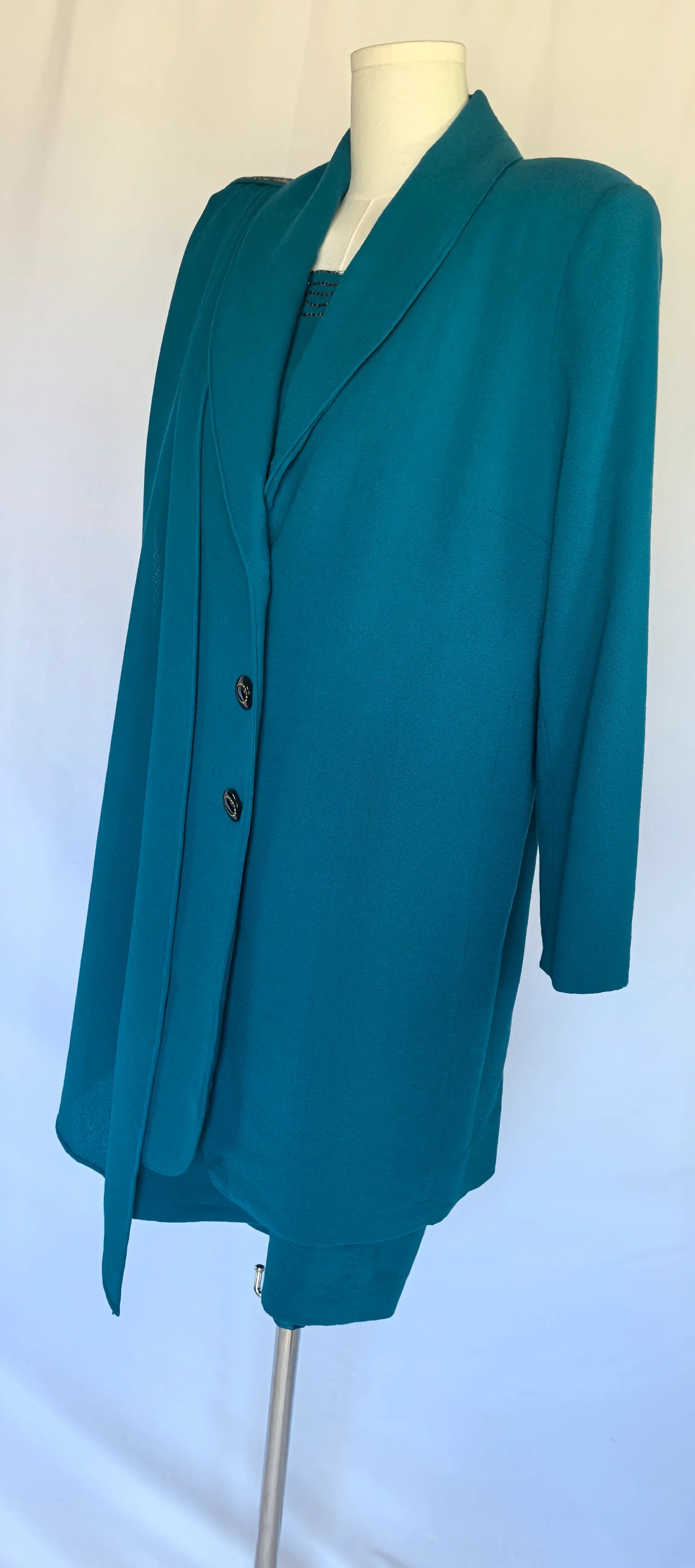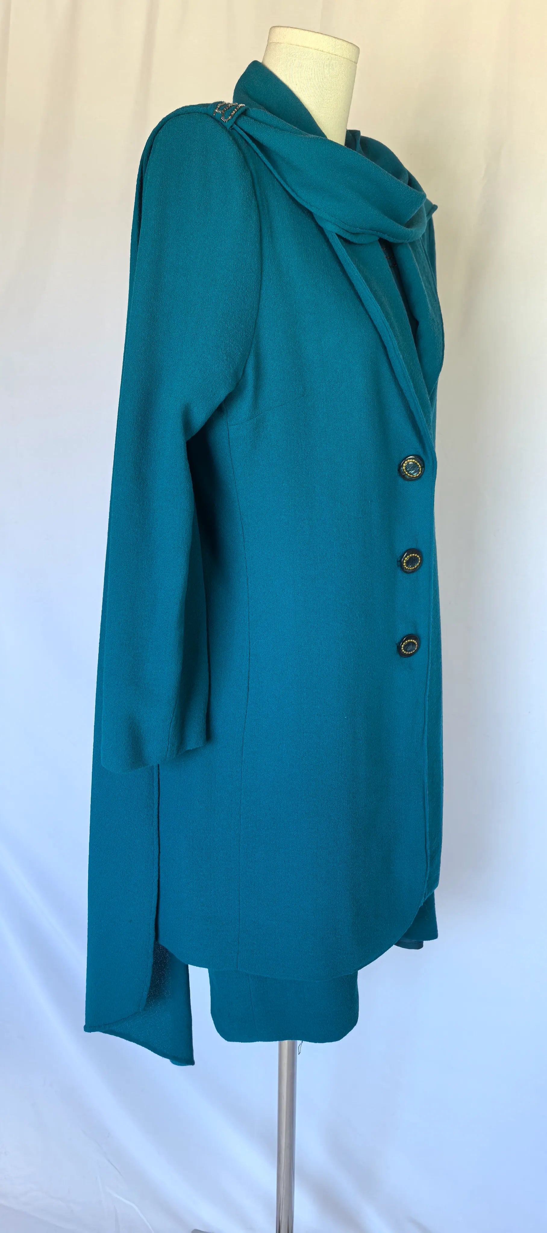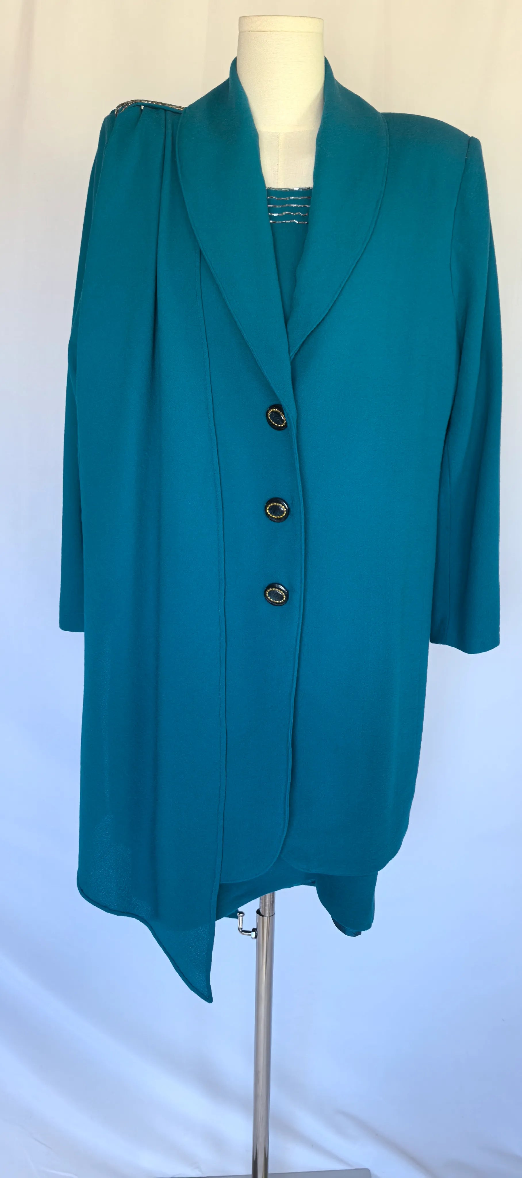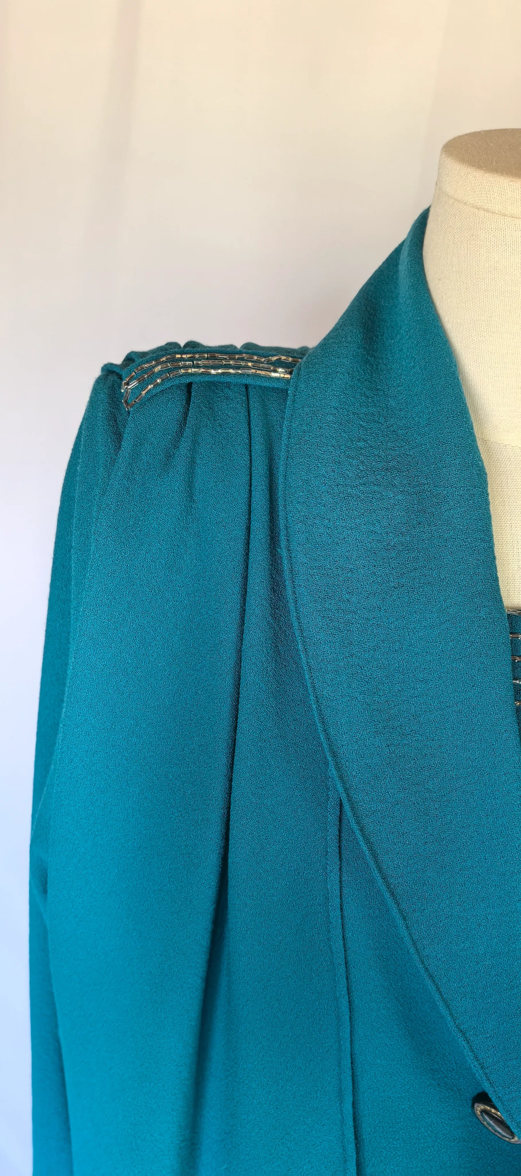 Mantou: bust 49 cm, talie 45 cm, umeri 41 cm, maneca exterioar 60 cm, lungime totala 91 cm